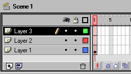 basso a sinistra del timeline I layer si possono anche rinominare, e conviene certamente farlo per tenerne facilmente a mente gli oggetti che esso contiene. Basta effettuare un doppio click sul nome (es.: Layer 1). Per cancellare il layer, invece, basta trascinarlo nel cestino in basso a destra (per recuperarlo basta effettuare l'Undo con CTRL+Z). ![]() Ancora pi� semplice l'operazione per spostare l'ordine dei Layer: basta trascinarli nella posizione che si desidera all'interno della sequenza dei layer e rilasciarlo. E' importante questa operazione perch� gli oggetti dei layer pi� in alto coprono quelli dei layer pi� bassi. Molto utile la propriet� per visualizzare i contorni soprattutto nel caso in cui bisogna ritracciare una bitmap: in tal modo le linee che vengono disegnate non nascondono il disegno sottostante e si pu� lavorare con maggiore precisione. Ci sono anche altri due tipi di layer che vengono utilizzati per un uso diverso: sono le guide e le maschere. Ne spiegheremo l'utilizzo nelle animazioni. [ I n d i c e ] |