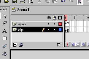 Bene, abbiamo creato una gocciolina di pioggia che, con l' effetto del cerchio finale, potrebbe dare l'impressione che cada in acqua. Ora per� dobbiamo assegnare le varie azioni del duplicate movieclip. Quindi: - nella scena principale importiamo, andando su window e poi sulla libreria, la clip che abbiamo creato ( < clip pioggia >) nel primo layer che ovviamente avr� il nome della clip e nell' istanza nome assegnamo il nome di < goccia >. - Creiamo un secondo layer che sar� chiamato < azioni > , con due keyframe vuoti dove nel primo inseriremo queste azioni: duplicateMovieClip ("_root.goccia", i, i); // duplico il movieclip goccia, i = assegno un nuovo nome per il duplicato, i = profondit� del duplicato. setProperty (i, _x, random(600)); // nel setProperty aggiungo la funzione random nell'asse X, io ho inserito 600 perch� il random sar� tra il punto 0 e 600 dello stage. setProperty (i, _y, random(50)-100); // stessa cosa, ma per l'asse Y. mentre nel secondo frame inseriamo queste azioni: i = i+1; // " i " assume il valore di una variabile a cui aggiungo 1 gotoAndPlay (1); // torna la primo frame