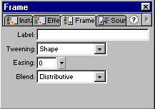Per creare l'animazione si utilizza un keyframe (o lo si crea con F6) e si disegna una forma (eventualmente si faccia attenzione a non disegnare il fill o bordo in quanto crea parecchi problemi), si crea un'altro keyframe con una forma diversa (se si desidera si pu� cambiare anche il colore), si clicca su un punto qualsiasi dei fotogrammi intermedi e si apre la serie di cartelle in cui si utilizza quella Tweening. Qui si sceglie Shape nel menu a tendina ed eventualmente si imposta il Blend Type, che attenua o evidenzia le smussature e i vertici, e l'Easing per accelerare o rallentare i movimenti nei fotogrammi iniziali.