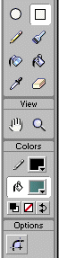 A questo punto si possono anche raggruppare gli strumenti del Toolbox in base alle caratteristiche comuni: il primo raggruppamento � quello degli Strumenti per disegnare Forme, in inglese Shapes, termine importantissimo che ritorner� in seguito a proposito di un altro argomento. Ecco questi strumenti: