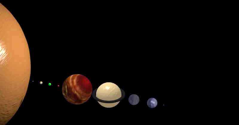 Nella foto seguente troviamo il Sole alla sinistra e in ordine di distanza i pianeti più importanti:Mercurio,Venere, Terra, Marte,Giove, Saturno,Urano,Nettuno,Plutone.